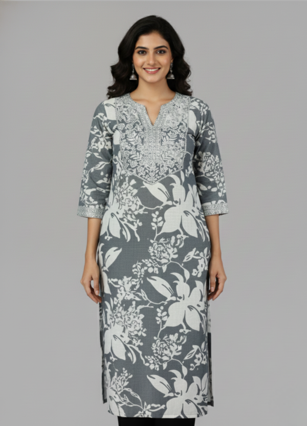 Size & FitSizeAcross Shoulder (in)Bust (in)Length (in)M14-1534-3640L14-1536-3840XL14-1538-4040XXL15-1640-4240Material & CareGentle Machine Wash, Wash dark colors separately, Do Not BleachSIZEM, L, XL, XXL ReviewsThere are no reviews yet. Be the first to review “Frosted Flora Kurti”Cancel ReplyYour email address will not be published. Required fields are marked *Your rating *Rate…PerfectGoodAverageNot that badVery poor Name *Email *Your review * I accept the Privacy Policy Save my name, email, and website in this browser for the next time I comment.Submit No more offers for this product!General InquiriesThere are no inquiries yet.